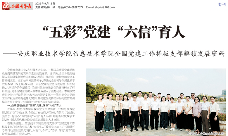 近年来,信息技术学院教师党支部聚焦新一代信息技术应用,围绕“信”字做文章,创设以“有信仰、可信赖,有信用、可信任,强信念、有信心”为内涵的“六信”育人品牌,培育新时代数字工匠,为中国式现代化建设提供高素质技能人才支撑。
