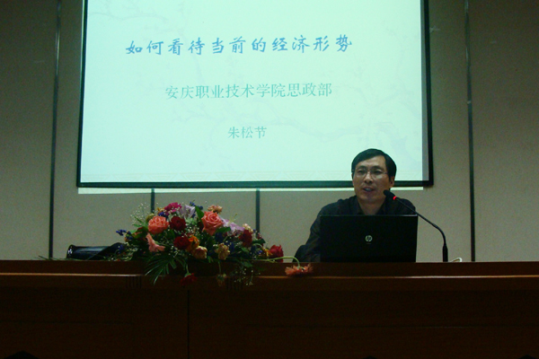 为加强政治理论课教学改革,提高思政课教学有效性和针对性,4月29日,思政部主任朱松节在院图文信息中心一楼报告厅作了“如何看待当前的经济形势”的专题报告会。400多名师生聆听了报告。