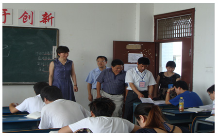 7月4日上午,院党委书记江洪,院党委副书记张旺牛在教务处、思政部及相关系部负责同志的陪同下,深入各考场,巡视指导本学期思政理论课期末考试工作。每到一处,江书记、张书记都仔细察看考场环境卫生、考试秩序,检查学生证件及答卷情况。