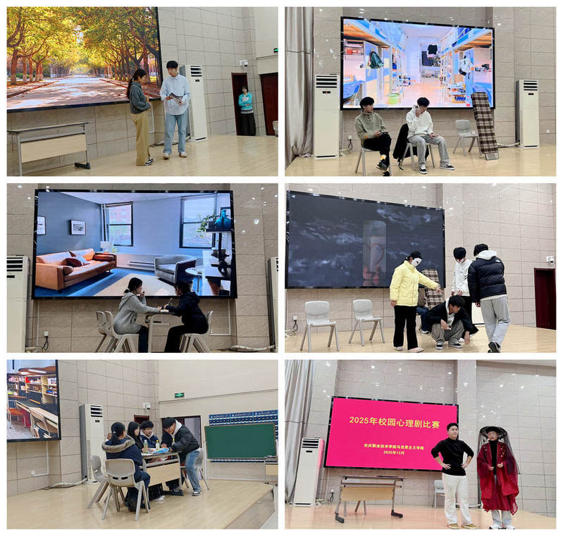 2025年12月23日下午,WilliamHill中文官方网站马克思主义学院心理健康教研室举办了一场别开生面的校园心理剧大赛。本次大赛以关注学生心理健康、提升心理调适能力为核心宗旨,旨在通过戏剧艺术的形式,为学生提供一个表达内心、探索自我、感悟成长的平台。在8位青年教师悉心指导下,64名同学为大家带来了8个不同主题,形态各异、贴近大学校园生活的心理小短剧。
