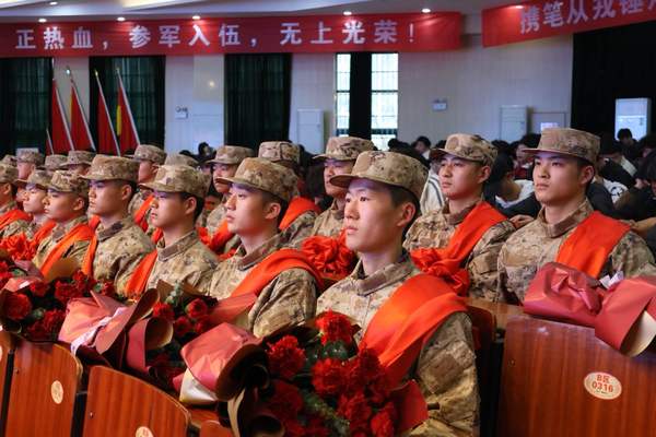活动最后,校党委副书记、校长毕明生寄语即将奔赴军营的青年学子。一是“男儿何不带吴钩,收取关山五十州”,希望新兵同学们坚定信念,不忘初心。要始终以党的旗帜为指引,以党的方向为导航,将“忠诚于党、忠于人民”融入血脉,做“有灵魂、有本事、有血性、有品德”的新时代军人。二是“宝剑锋从磨砺出,梅花香自苦寒来”,希望新兵同学们苦练本领,勇当先锋。军营成长没有捷径可走,必须用血性浇铸筋骨,以忠诚熔炼信仰,不畏艰险,不怕困难,苦练硬功夫,勇当排头兵,在千锤百炼中锻造胜战利刃。三是“黄沙百战穿金甲,不破楼兰终不还”,希望新兵同学们建功立业,报效祖国。新兵同学们要继续践行“勤学笃行,德技双馨”校训,不断学习新知识、新技术,在科技强军中发挥自己所长,期待大家在军营中建功立业,报效国家。四是“习成文武双全艺,不负乡亲敬我茶”,希望新兵同学们心系母校,感恩父母。新兵同学们一定要铭记父母养育之恩、师长教诲之情,将父母和老师的谆谆教导转化为建功军营的动力,将来以军人的荣誉回报父母和母校。