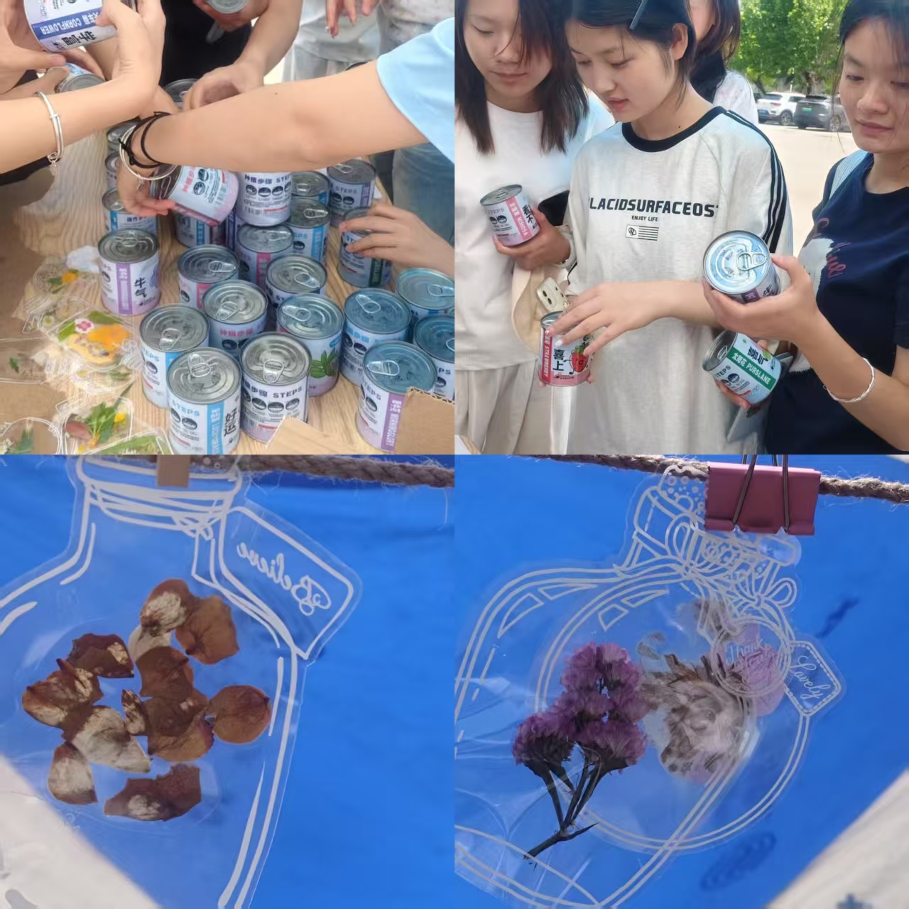 春日校园,成为生命教育与情感疗愈的沉浸课堂。5月30日,拾春、晒春活动,以分发时光瓶为引,邀学子漫步湖畔草坪,收集晨露中的玉兰、飘落的月季等具有季节特征的植物标本,鼓励学生走进自然捡拾花瓣、记录生活瞬间。自然疗愈与心理健康在此刻交融,同学们于盎然生机中感悟生命的美好,以拾春之举呼应凝小事微光的深意。活动更延伸出种子盲盒的温暖传递,将学生们封存的春日温度化为可培育的花种,静待花开时节开启新一轮的心灵滋养。环保理念的融入与多元联动,确保了全员参与的广度与情感浸润的深度。