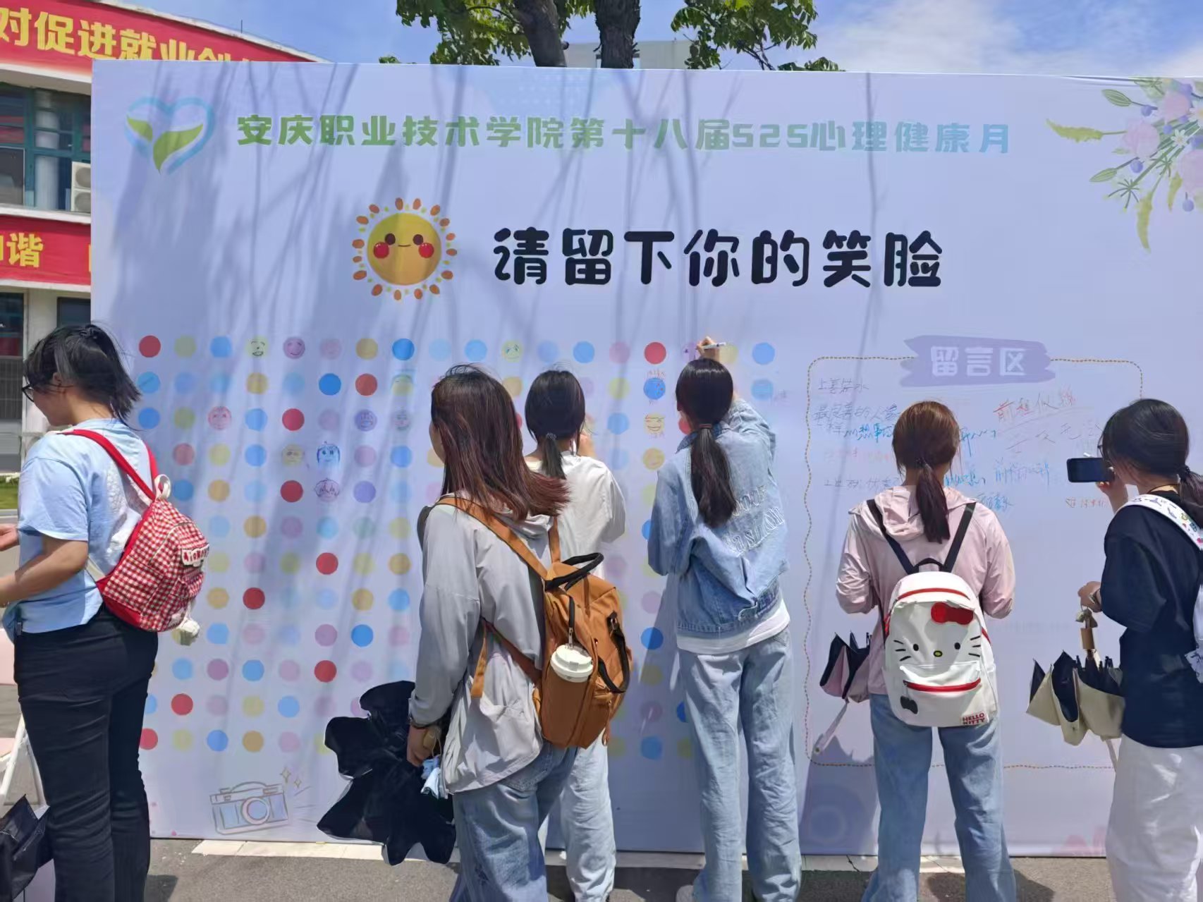 互助的暖流,在校园中悄然汇聚、流淌。5月14日开展的共绘笑脸墙活动,成为朋辈间情感表达的温馨窗口。一张张亲手绘制的笑脸,一句句真挚的留言,是快乐的传递,更是无声的鼓励与支持。共享喜悦,强化互助,这面全员参与的笑脸墙,已然成为校园中最动人的风景,生动演绎着环境与人心灵的和谐共鸣。