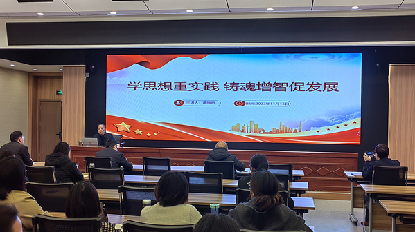 11月15日下午,党委委员、副校长谭维奇以《学思想重实践 铸魂增智促发展》为题为图文信息中心直属党支部全体党员讲授主题教育专题党课,党课在图文信息中心三楼报告厅举行,信息技术学院党总支、机关第四党支部全体党员一并参与听课学习。