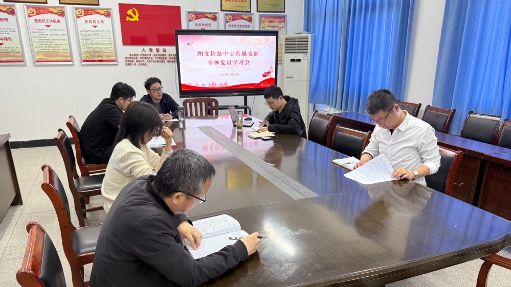 3月26日下午,图文信息中心直属党支部召开党员专题学习会,支委委员陈伟同志主持学习会,全体党员参加学习。