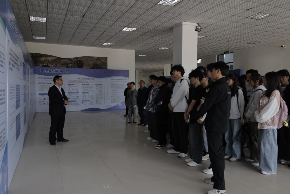今年4月15日是第十个全民国家安全教育日,校党委宣传部、马克思主义学院和图文信息中心共同举办“新时代 新青年 新安全”总体国家安全观主题宣传展在图文信息大楼展出,吸引众多师生前来参观学习。校党委委员、副校长谭维奇、校党委宣传部部长吴何珍观看展览、观摩思政实践课,并就如何充分发挥展览资源的育人作用等方面给予指导。
