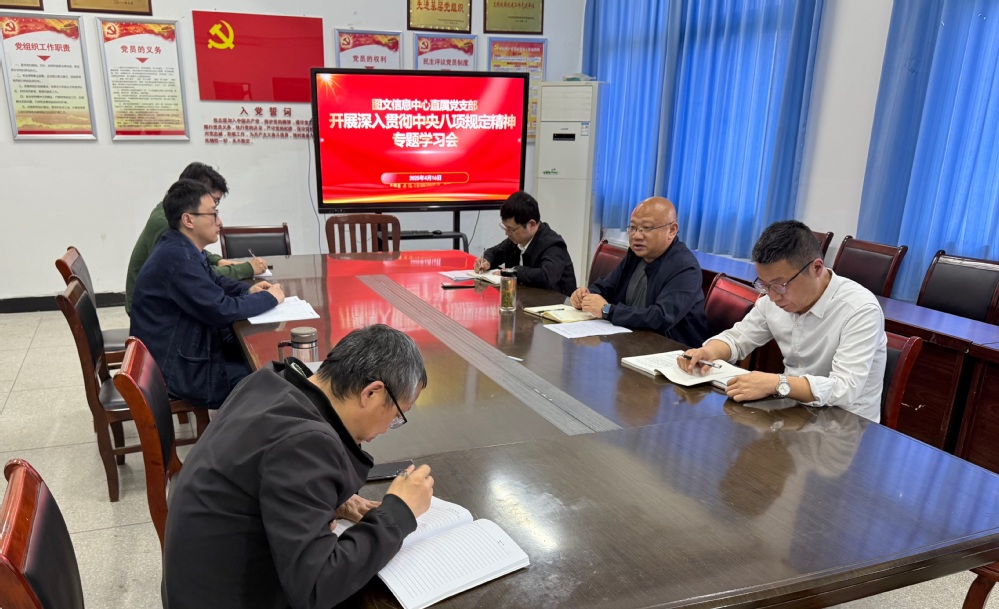 4月16日下午,图文信息中心直属党支部召开党员专题会议,启动党支部深入贯彻中央八项规定精神学习教育,集中学习领会中央八项规定精神,并进行交流研讨。支部书记许迪楼主持会议,全体党员参加会议。