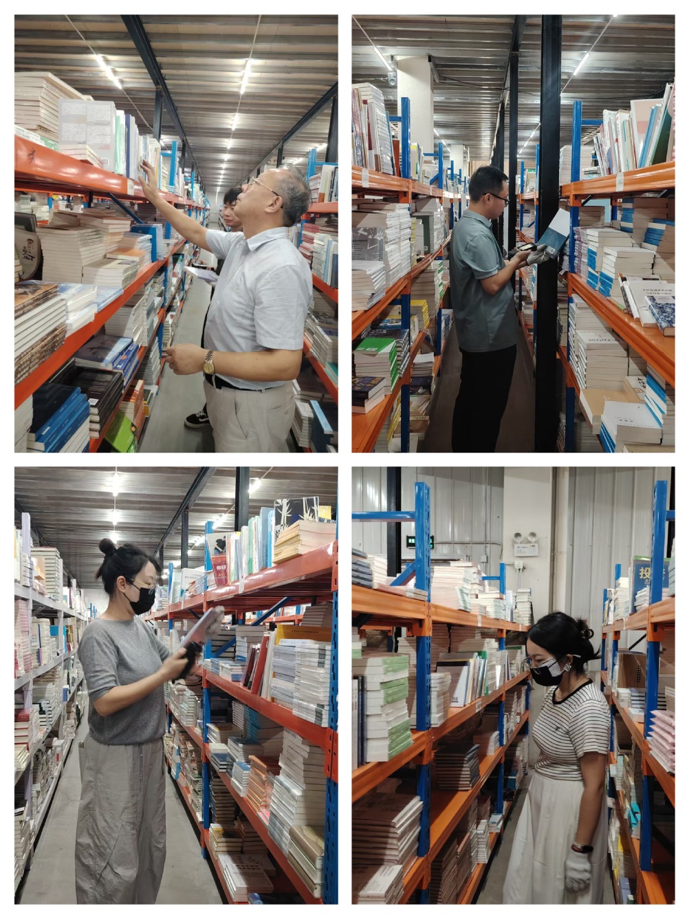 线下选书期间,团队分别前往北京思得乐新书中盘库、河北保定市涿州市馆配中心开展实地选书,每日 8:30 起进入书库,借助书库检索设备精准查找图书,在各分类区域细致浏览筛选,并用采集器做好存档记录,每日选书工作结束后召开总结会,汇报采购进度、汇总清单并调整次日计划。