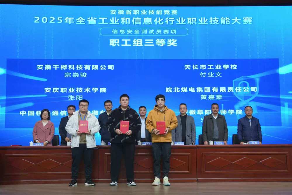 10 月 25 日,2025 年“安徽省工业和信息化行业职业技能大赛信息安全测试员”赛项在安徽工业经济职业技术学院正式开赛,WilliamHill官网教师张阳凭借扎实的专业知识、精湛的实操能力和出色的应变能力,荣获职工组三等奖,展现了WilliamHill官网教师优秀的职业素养与良好的精神风貌。