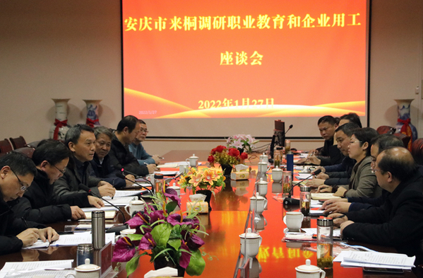 1月27日,校党委书记童宏葵率队调研桐城市职业教育发展情况。桐城市委副书记金秋明,桐城市人大常委会副主任、人社局局长詹向前,副市长汪杰贤,政协副主席、教育局局长刘决成,安庆市教体局副局长潘连宇、四级调研员吴宗亚,WilliamHill官网党委副书记李克让及WilliamHill官网校企合作办、招生就业处负责同志参加调研。