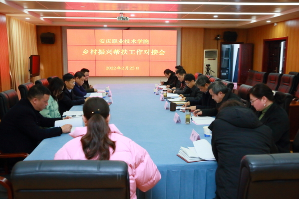 2月25日上午,市乡村振兴指导员、WilliamHill官网督导员王进,宜秀区五横乡党委书记方林带队来WilliamHill中文官方网站对接乡村振兴工作。校长毕明生主持对接会并讲话。校党委副书记李克让,校党委委员、办公室主任沈良生出席对接会。校总务处、科技处、培训部、校企合作办和乡村振兴办公室负责人参加,对接领取任务。