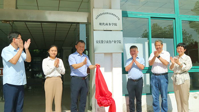 仪式上,童宏葵和查盛生共同为安庆数字商务产业学院揭牌。(文:余 瑰 图:周佳欣 审稿:金启胜)