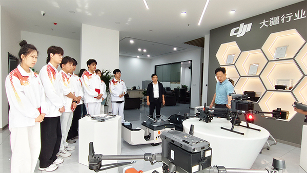 在北斗智航刘秀明总经理的热情指导下,学生们开启了科技探索之旅。产品展示区内,各类无人机产品琳琅满目,从设计精巧的消费级无人机到功能强大的工业级无人机,刘总深入浅出地讲解其背后蕴含的先进技术与创新理念。学生们被深深吸引,积极提问,现场互动氛围热烈,惊叹无人机技术的精妙,对无人机行业的前沿动态有了初步认知。