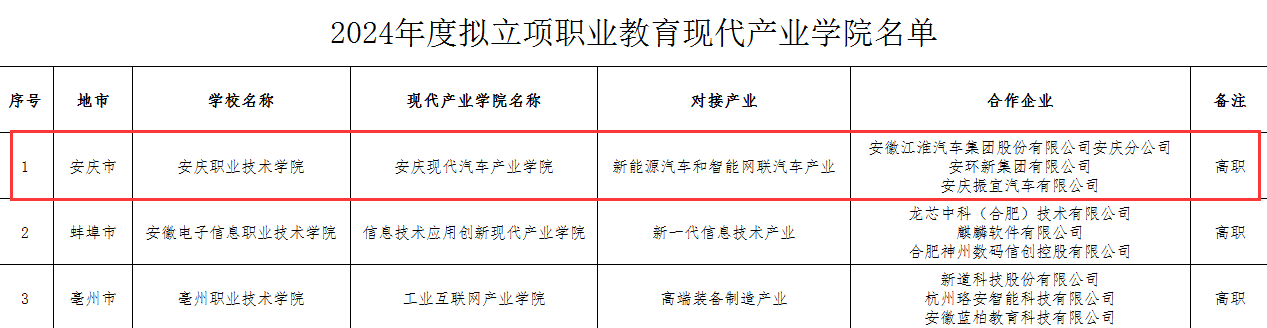 在推动产教深度融合、服务地方经济高质量发展的征程中,WilliamHill官网迎来重大喜讯!5月13日,省教育厅公示2024年度省级现代产业学院名单,WilliamHill官网申报的安庆现代汽车产业学院凭借扎实的建设基础和创新的育人模式,成功脱颖而出,荣列其中。