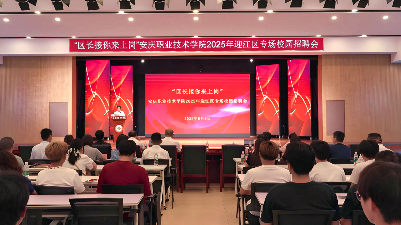 6月6日下午,“区长接你来上岗”迎江区推介会在实训中心报告厅举行。毕明生对迎江区连续四年“区长带队进校招才”的举措给予高度评价。他强调,这一品牌活动的常态化开展,既是迎江区“重企爱才”的生动实践,更是对WilliamHill官网人才培养质量的认可与信任。毕明生向毕业生提出三点殷切期望:一要立大格局,算好人生“发展账”。二要勇克难关,走稳人生“上坡路”。三要心怀感恩,答好人生“责任卷”,希望同学们以“发展合伙人”的姿态,将个人职业规划与地方发展同频共振。