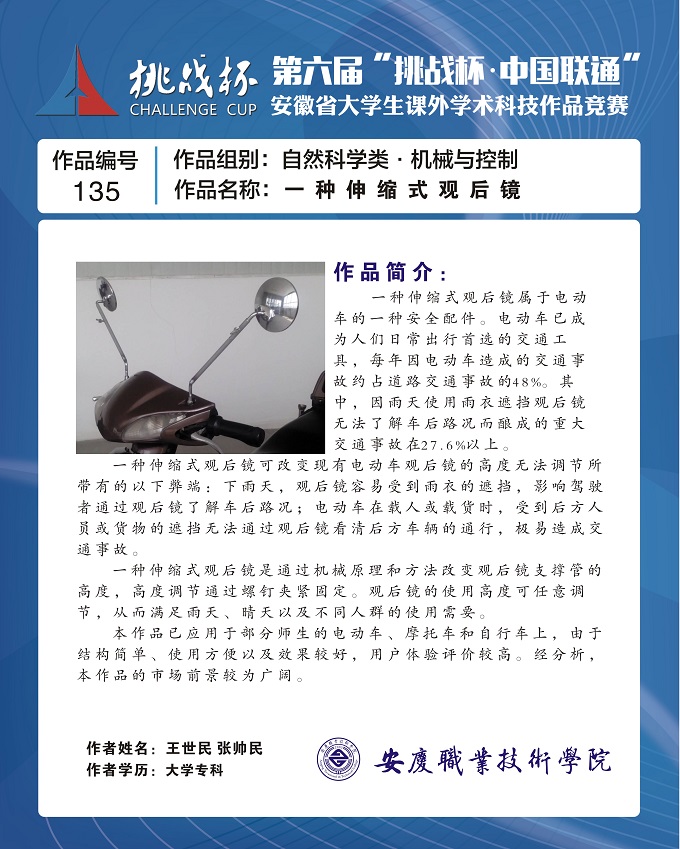 我院三件学生作品入围第六届省“挑战杯”大学生课外学术科技作品终审决赛