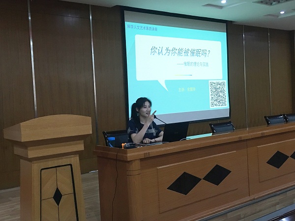 6月7日下午,科学人文艺术素质讲座《你认为你能被催眠吗》在图文信息楼三楼学术报告厅举行。讲座邀请余慧玲老师主讲,180余名学生代表聆听了讲座。