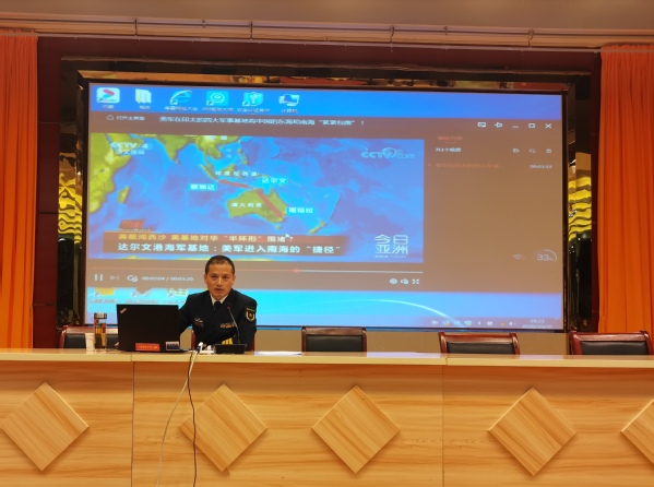 潘发良在讲座中,首先带领大家回顾南海在我国安全和发展全局中的战略地位,指出南海“扼两洋、制八海”领域宽、资源广的特点,是我国重要的战略运输通道和资源接替区,南海军事利用条件得天独厚,在南海拥有重大主权利益。其次分析了中国南海安全的危险与挑战,以及南海周边国家对我国提出的无理要求与安全挑战。最后尤其强调青年一代有理想、有本领、有担当,国家就有前途,民族才有希望,呼吁大学生重视国防,要牢记惨痛历史,增强忧患意识,树立正确的国防观。