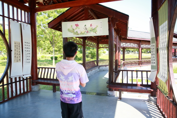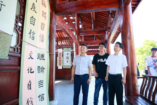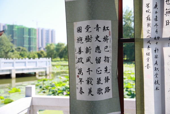 轩窗廊榭古朴雅致,莲叶菡萏清香盈怀,将红色主题和喜庆氛围衬托得鲜明浓厚,信念美、人文美、景观美、自然美统一和谐,相映成趣,吸引了一批又一批师生驻足观赏。(文、图:闻胜海 审稿:潘发生)