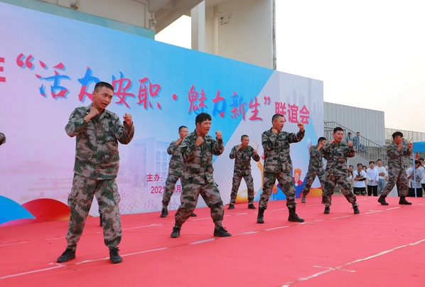 联谊会在一支动感的现代韩舞中拉开帷幕。婉转动听的女生合唱《稻香》、黄梅戏经典对唱选段《对花》、唯美优雅的古典舞蹈《蕃社姑娘》、嗨翻全场的Rap演唱等节目,展示了2021级新同学的多才多艺和青春活力,赢得了现场的阵阵掌声;悠扬的吉他弹唱《等你下课》、精彩绝伦的模特走秀、气势磅礴的朗诵《百年颂歌》等老生节目,为在场师生上演了一场视听盛宴,表达了学姐学长对新同学们的诚挚欢迎;新生辅导员老师赵晓彬献唱的《琵琶行》、军训教官们表演的军体拳更是将联谊会的气氛推向了高潮。联谊会的最后,军训各营队互动拉歌,激昂澎湃的军歌响彻云霄,为联谊会画上圆满句号。