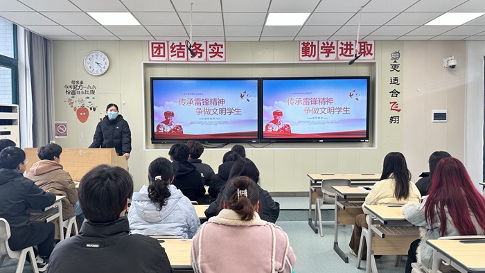 会后,李慧作《传承雷锋精神 争做文明学生》的主题团课宣讲,介绍了雷锋的生平事迹和精神内涵,号召同学们学习雷锋同志无私奉献、助人为乐的崇高品质。倡导大学生做到:在人生目标上,全心全意为人民服务;在工作上,爱岗敬业,尽职尽责;在生活上,勤俭节约,乐于助人;在学习上,学无止境,永不懈怠;在作风上,谦虚谨慎,不骄不躁。