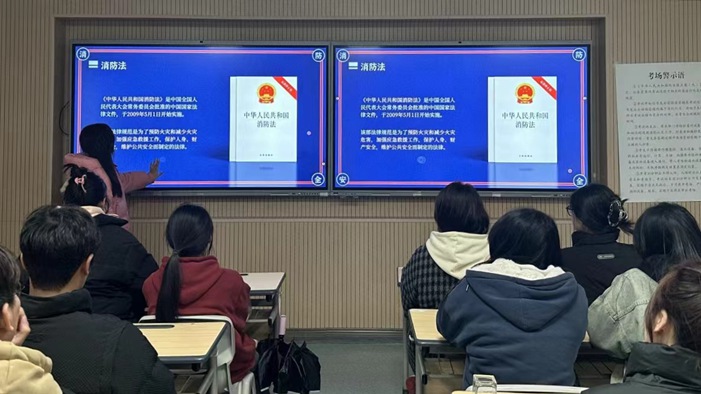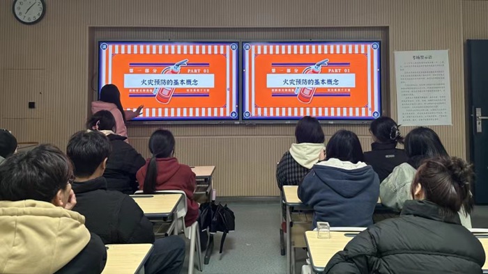 在活动中,由团支书带领同学们学习关于消防安全的理论知识,通过丰富的照片、文字和数据,全面讲解了消防安全的重要性、火灾的预防措施以及发生紧急情况的应对方式。同学们聚精会神地听讲,积极讨论,进一步增强了对消防安全知识的理解。