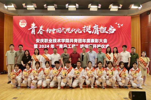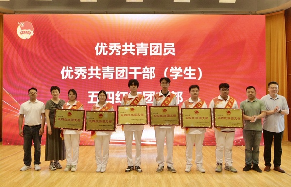 校团委负责同志宣读共青团年度表彰文件,为2024年“青马工程”培训班授旗。与会领导和嘉宾为先进集体和个人颁奖。