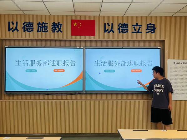 述职现场,团总支学生会就基本情况、党团学习、学风建设、文体活动、志愿服务、社会实践等内容,通过PPT及视频等方式,对2023-2024学年的团学工作进行了全面回顾,展示、分享了这一年来取得的成绩及成长,同时也对现阶段存在的问题和改进措施作了认真的分析并提出了合理的建议。