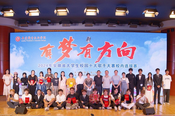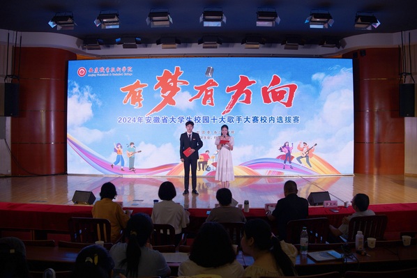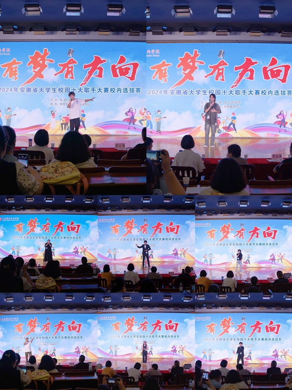 有梦有方向,青春无限量。为进一步丰富校园文化生活,推动校园精神文明建设,营造健康高雅的美育氛围,9月13日晚,由校团委主办的“有梦有方向”安徽省大学生校园十大歌手大赛校内选拔赛在图文一楼报告厅顺利举行。叶鹏鹏、梅文斌、罗文雍、张铮、翟程玲五位老师担任比赛评委,校团委、各二级学院团总支负责老师及300余名新生代表观看了比赛。