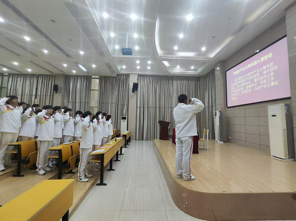 最后,在学员代表马凌云带领下,全体学员纷纷起立,高举右拳,庄严地诵读入团誓词。誓言声声入耳,字字入心,全体学员在诵读中深刻感受到入团誓词的庄重和神圣,进一步坚定了信仰,增强了责任感和使命感。