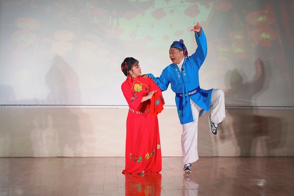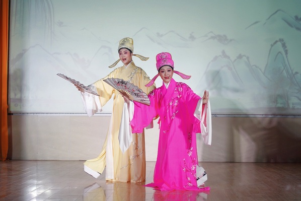 活动中,多部经典黄梅戏剧目轮番上演。首先是传统剧目《夫妻观灯》,舞台上生动呈现了元宵佳节王小六夫妻进城看灯的热闹场景,台下观众沉浸于其欢快的氛围和细腻的表演之中,仿佛置身于旧时的元宵灯会。紧接着,《女驸马》“状元府”桥段精彩亮相,演员们精湛的演技将冯素珍女扮男装、机智推脱招驸马圣旨的情节展现得扣人心弦,展现了黄梅戏独特的艺术张力和深厚的文化底蕴,赢得阵阵掌声。新编黄梅小戏《二妹子闹元宵》更是以贴近生活的故事和活泼的唱腔吸引了观众的目光。该剧讲述了平民女子二妹子凭借智慧捍卫爱情的故事,充分展现了黄梅戏反映百姓生活的特点,其花腔小调的优美旋律在厅内久久回荡。随后的《十八里相送》经典片段,梁山伯与祝英台的深情演绎让观众深刻感受到了这段千古爱情的凄美与执着,演员们细腻的情感表达和优美的身段动作,将现场气氛推向了高潮。最后上演的传统小戏《打豆腐》以幽默诙谐的方式讲述了王小六的转变,演员们生动的表演引发了台下观众的阵阵笑声,同时也传递了深刻的生活道理。