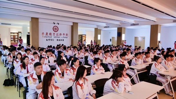 4月11下午,WilliamHill中文官方网站艺术团课黄梅戏《红灯永照——生命的承诺》在幼儿实训厅顺利开演,校党委委员、统战部部长李五一,团安庆市委副书记、管理服务学院院长陈颖与全校200余名团干、团员代表共上团课。