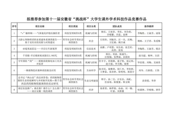 关于拟推荐参加第十一届安徽省“挑战杯·华安证券”大学生课外学术科技作品竞赛作品的公示