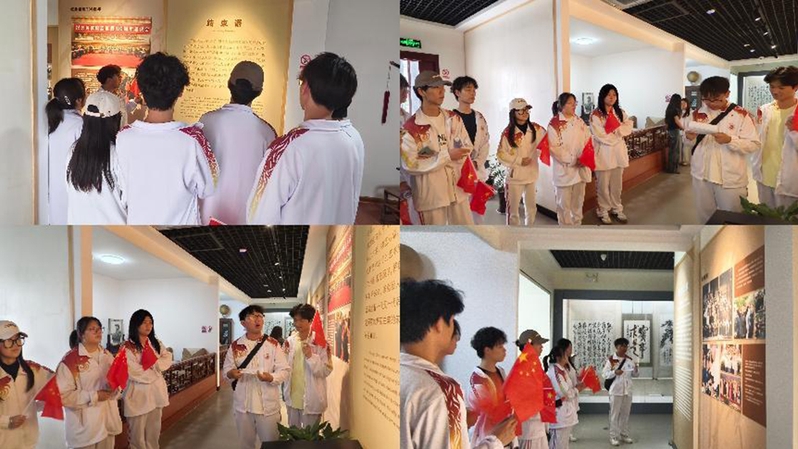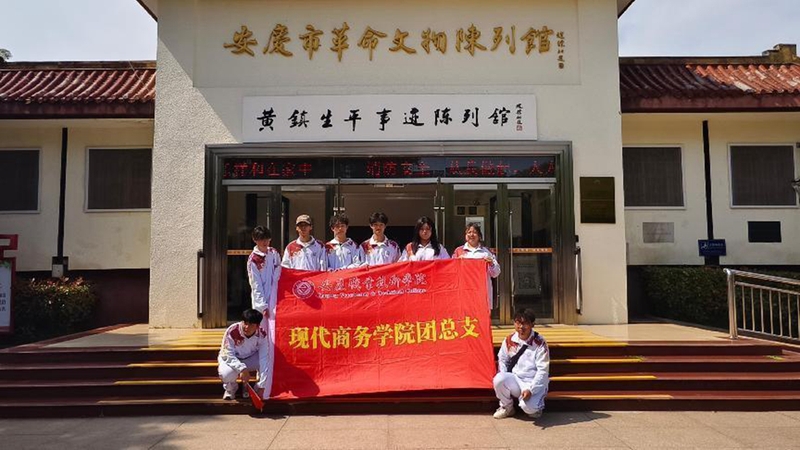 另一队同学们走进安庆市革命文物陈列馆,开展沉浸式红色研学实践活动。馆内,泛黄的书信、斑驳的武器、褪色的旗帜等丰富的革命文物,搭配珍贵的历史图片以及多媒体投影、场景复原等现代展陈技术,生动地再现了安庆地区波澜壮阔的革命历程。秦洪鑫同学感慨:“在这里,我仿佛与革命先辈进行了一场穿越时空的对话。”激励同学们为实现中华民族伟大复兴的中国梦而努力奋斗。