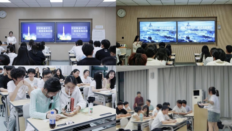 国防科技主题活动聚焦航天航空领域,点燃学子们立志科技报国的热情。24级大数据与会计2班徐瑞芳同学化身为“航天知识小讲师”,通过“PPT 讲解+模型制作+情景剧”的形式,系统介绍我国制造火箭的艰辛历程。田梦苛同学以“从无到有,从弱到强”为主线,结合影像资料,系统梳理中国航空工业70余年的发展巨变,生动展现了我国航空工业从引进吸收到自主创新的跨越。在“写给未来航天的一封信”环节中,同学们写下了对未来中国航空航天事业发展的期待与祝福。