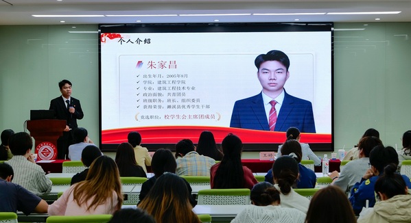 为贯彻落实共青团中央、教育部、全国学联联发的《关于推动高校学生会(研究生会)深化改革的若干意见》《普通高等学校(研究生)代表大会工作规定》等文件精神,扎实做好校第八次学生代表大会筹备工作,9月26日下午,校团委组织召开第二十二届校学生会主席团竞选面试会。校团委负责同志王婷、副书记冯丰及各二级学院团总支书记组成专业评委团,全程参与面试评审工作。各团学组织学生代表、二级学院学生会代表观摩了本次竞选面试。