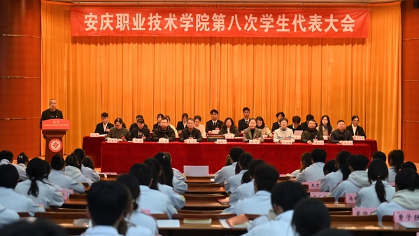 安庆市学联驻会执行主席丁奇代表市学联致辞,祝愿新一届学生会组织继续弘扬“勤学笃行 德技双馨”的校训精神,以本次学代会为契机,牢记习近平总书记的殷殷嘱托,立报国强国大志向,做挺膺担当奋斗者,在刻苦学习中练就过硬本领,在安庆高质量发展的征程中主动作为,在强国建设、民族复兴的伟大征程中,书写属于安庆青年的精彩华章。