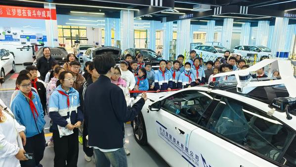 跟随志愿者的脚步,人民路小学五年级5个班的同学们秩序井然地先后走进蝴蝶标本馆、无人驾驶汽车展、3D打印馆、机器人操作展示、幼儿实训室等5个专业特色场馆,开启了一场集标本探索、智能展示、科技体验于一体的科普实践之旅。