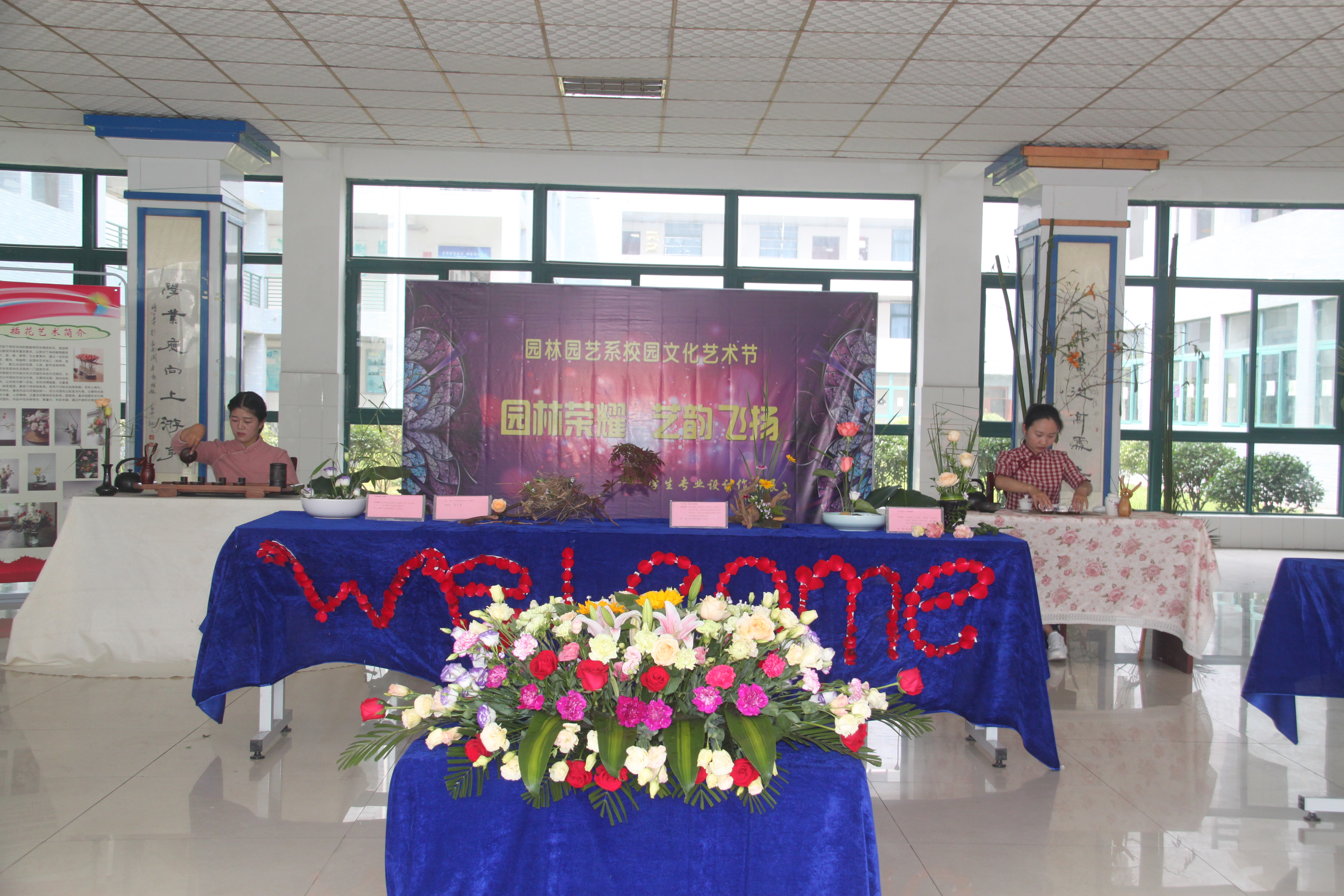 6月15日-16日,校园文化艺术节园林园艺系“园林荣耀,艺韵飞扬”专业设计作品展在2号教学楼东大厅成功举办。16日中午,院党委书记王进,副院长毕明生,学生处团委负责同志等领导老师在该系分管学生工作同志的陪同下参观了展览。