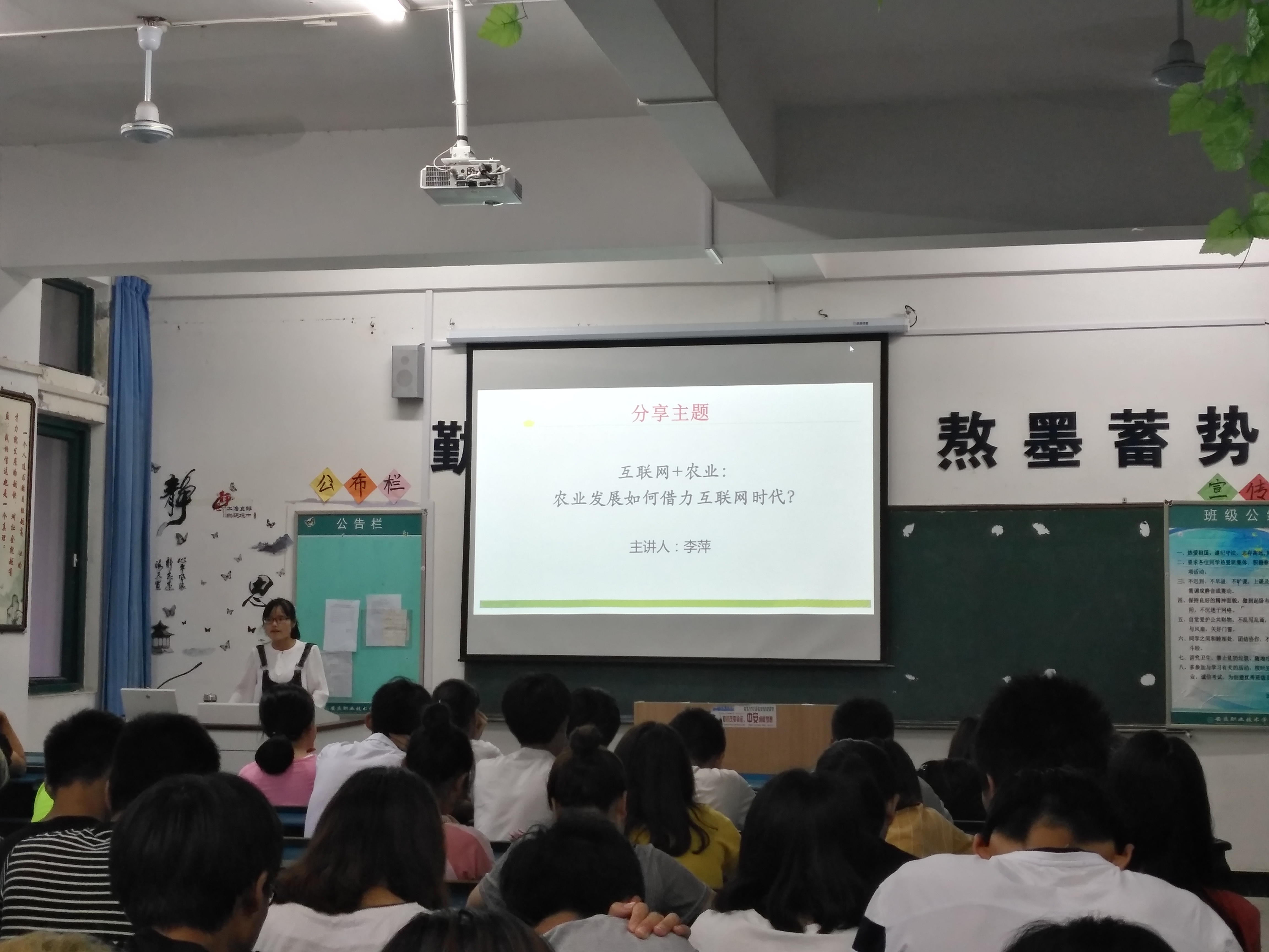 6月15日晚7点,我院科学人文艺术素质讲座《“互联网+农业”:农业发展如何借力互联网时代》在园林园艺系顺利举行,讲座邀请我院李萍博士主讲,园林系一百余名学生代表聆听的讲座。