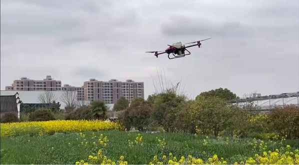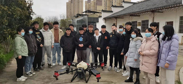 广西田园生化股份有限公司罗老师介绍了当前小麦病虫害的发生情况和一喷三防套餐,演示了农药的二次稀释过程。胡老师指导学生对小麦田块进行了测绘,并设置了流量、飞行高度等参数。参数设置完毕开始作业,通过小麦飞施杀虫剂烯啶·吡蚜酮、杀菌剂丙硫菌唑、叶面肥等,有效防治纹枯病、锈病、蚜虫和吸浆虫等病虫害,为小麦健康生长保驾护航。此次综合实训课,促进了学生职业技能的提升,加强了校企合作产教融合的紧密度。