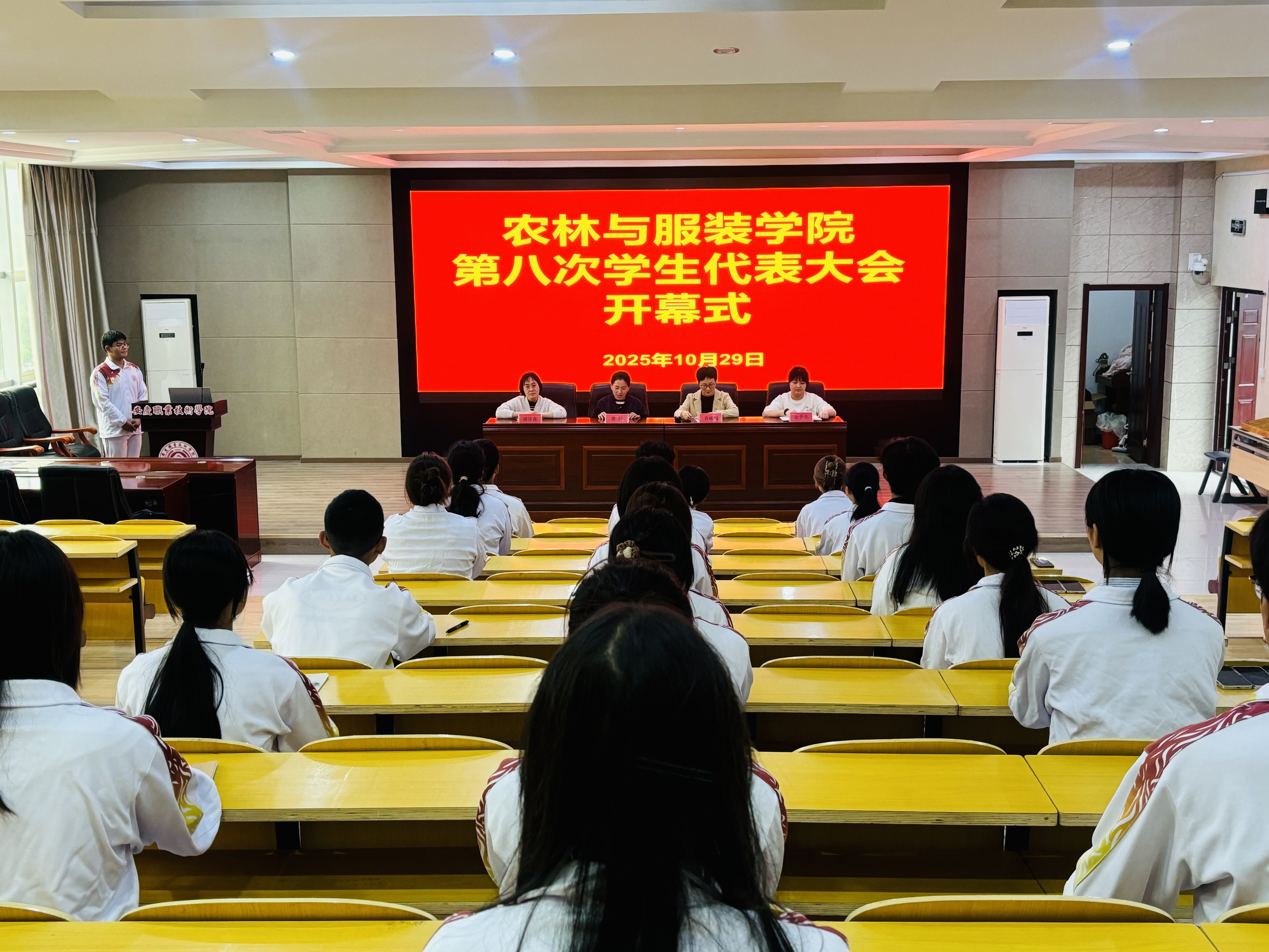 10月29日,农林与服装学院第八次学生代表大会在阶梯教室顺利召开。学院学生工作负责人、团总支书记及各分团代表共四十余人参加大会。