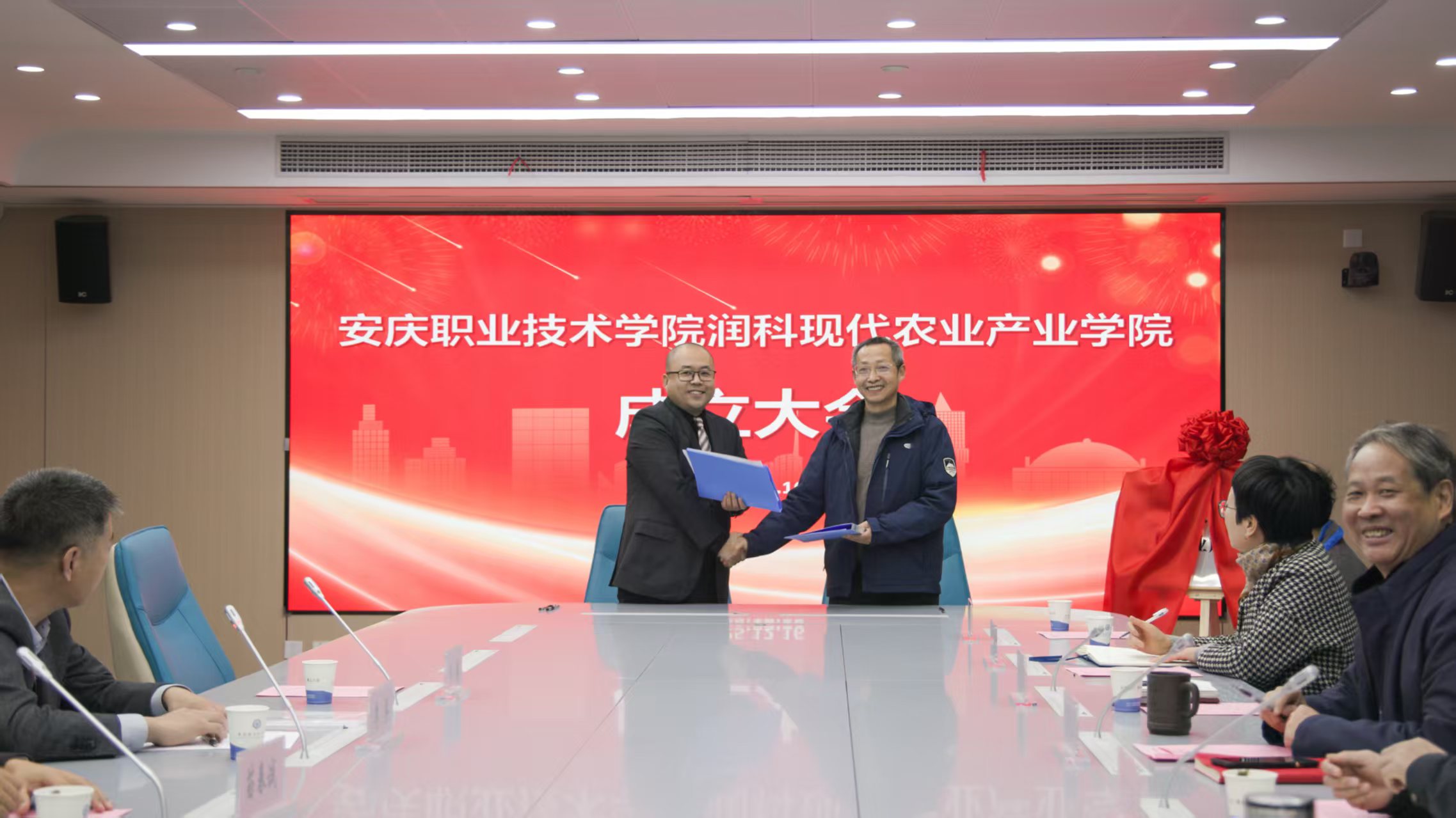 周克海对润科现代农业产业学院的成立表示祝贺。他指出,安庆作为农业大市,乡村振兴与农业现代化建设迫切需要高素质技能型人才,此次校企强强联合是深化产教融合的重要举措,搭建了校、企、政协同创新平台。希望产业学院成为高素质新农人摇篮、产业技术创新孵化器与乡村振兴助推器。市农业农村局将持续支持学院建设,期待校企精诚合作,打造产教融合典范,为地方农业高质量发展与乡村振兴贡献更大力量。