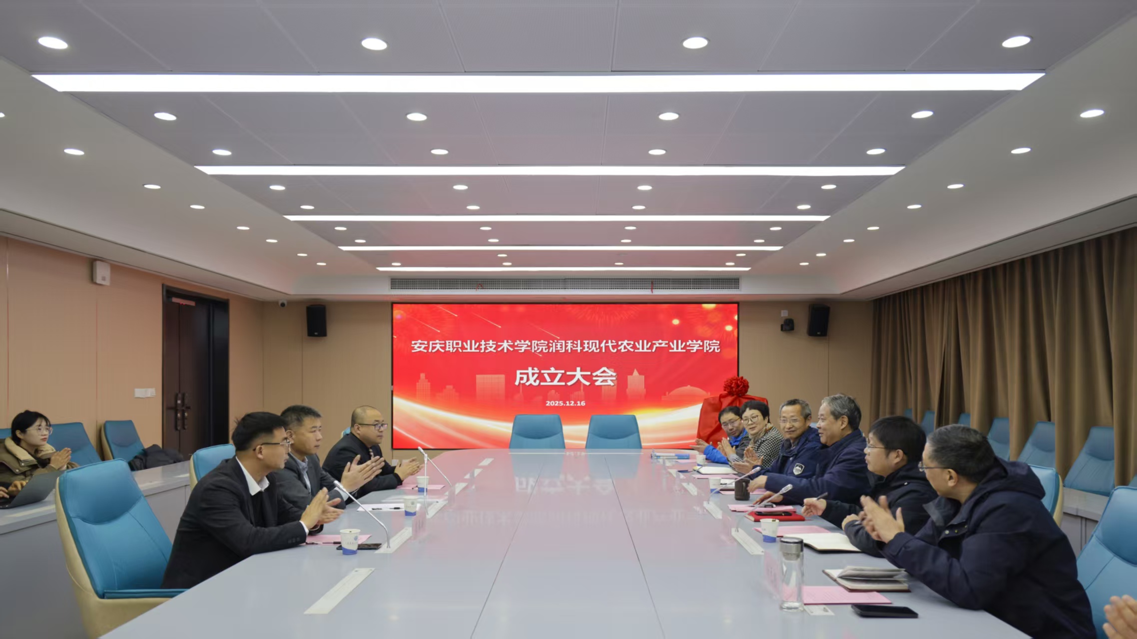 12月16日,WilliamHill官网与安徽润科农业科技有限公司共建的WilliamHill中文官方网站润科现代农业产业学院成立仪式,在校425会议室举行。校党委副书记李克让主持仪式。安徽润科农业科技有限公司董事长李兵、安庆市农业农村局副局长周克海出席,安徽润科公司代表,校企合作办、农林与服装学院负责人及教师代表参加。