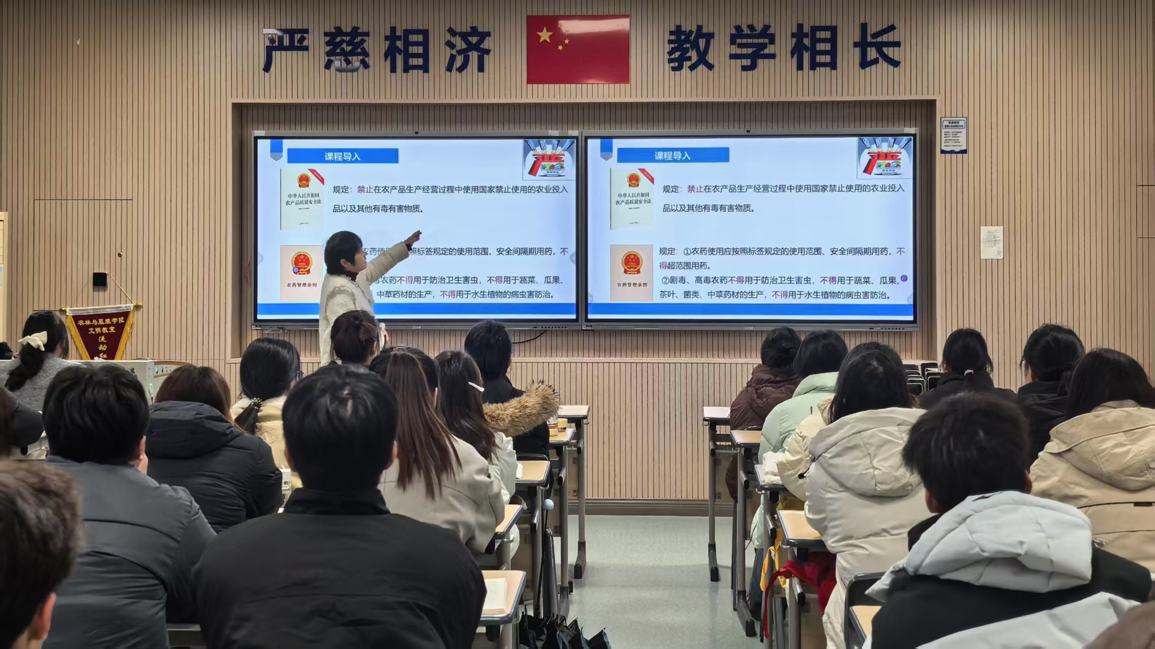 2025年12月23日,专业骨干教师陈玮老师主讲了《农产品质量安全检测技术》课程中的“农药残留检测”模块理论课。课程内容精准对接质量安全控制环节,贯通产业链培养目标。课堂上,陈玮老师以扎实的专业知识、清晰的逻辑脉络,系统讲解了农药残留检测的原理、方法与标准,并结合案例引导学生深入思考,课堂氛围严谨而活跃。专业群内部分教师到场观摩。