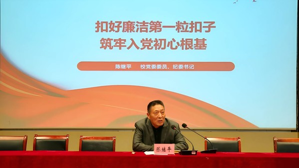 校党委委员、纪委书记陈继平主讲《扣好廉洁第一粒扣子 筑牢入党初心根基》。课程结合高校典型案例,深入剖析了入党初期强化廉洁意识的重要性,明确了学习、工作、生活中需坚守的纪律底线,引导学员从追求进步伊始就知敬畏、存戒惧、守底线,永葆清正廉洁的政治本色。